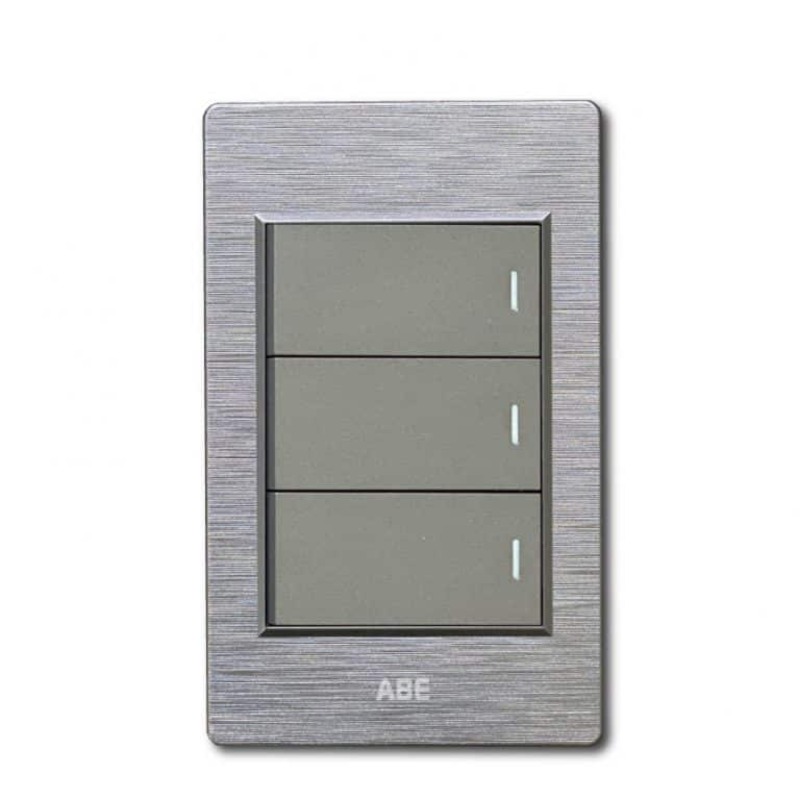 Công tắc ba dòng PCX có bề mặt được làm bằng Nhựa xước cao cấp kết hợp với hạt phụ kiện công tắc điện – Ổ cắm điện màu xám.