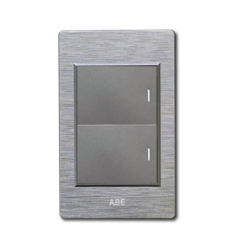 Công tắc đôi dòng PCX có bề mặt được làm bằng Nhựa xước cao cấp kết hợp với hạt phụ kiện công tắc điện – Ổ cắm điện màu xám.