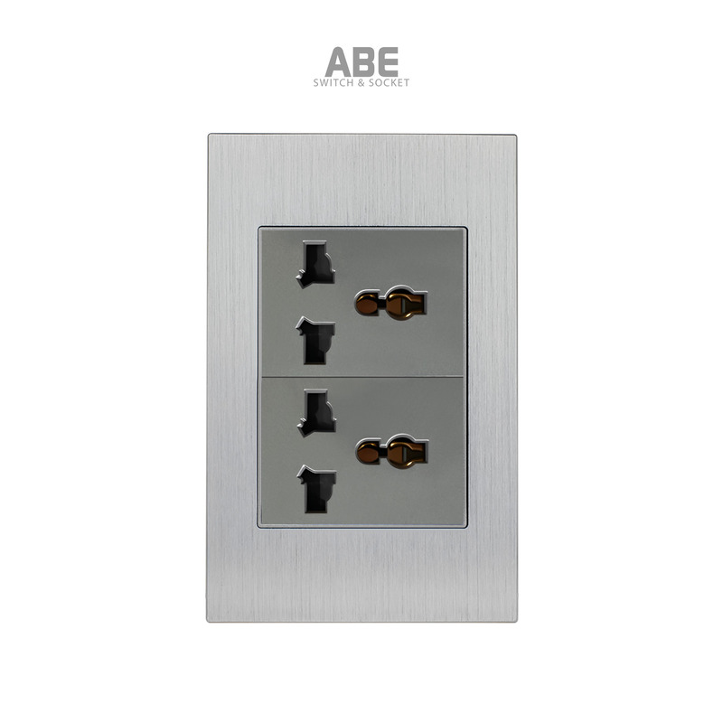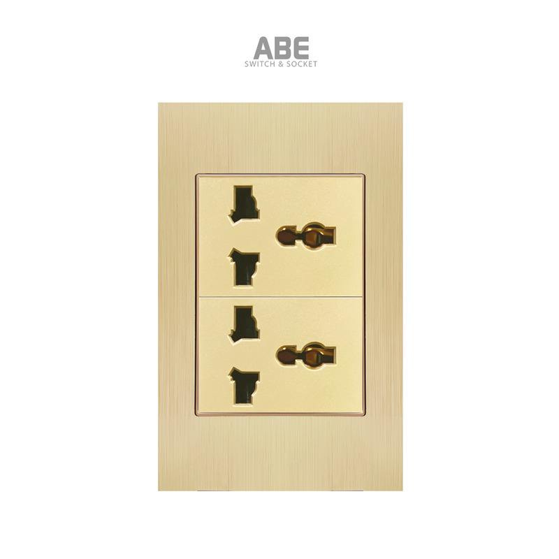 Ổ cắm đa năng 3 chấu Titanium X có bề mặt được làm bằng Nhôm xước nguyên khối kết hợp với hạt phụ kiện công tắc điện – Ổ cắm điện màu xám/ vàng