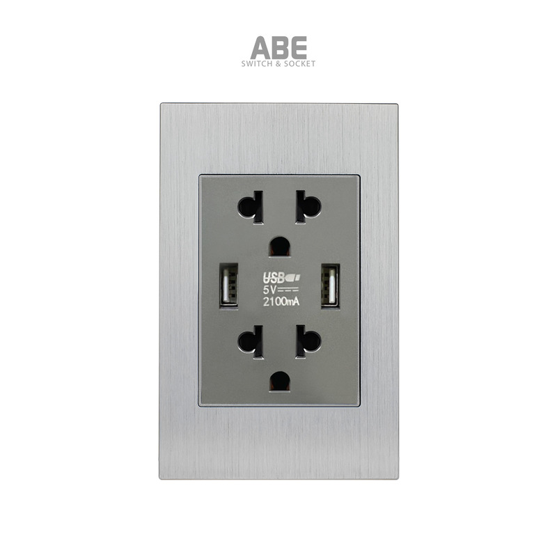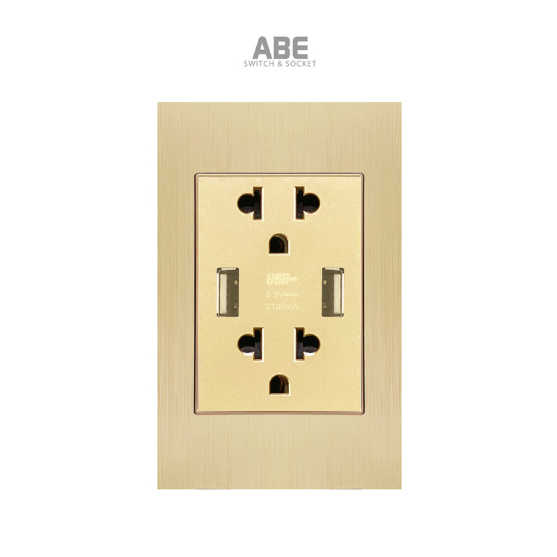 Ổ cắm đôi 3 chấu kèm USB đôi Titanium X có bề mặt được làm bằng Nhôm xước nguyên khối kết hợp với hạt phụ kiện công tắc điện – Ổ cắm điện màu xám/ vàng