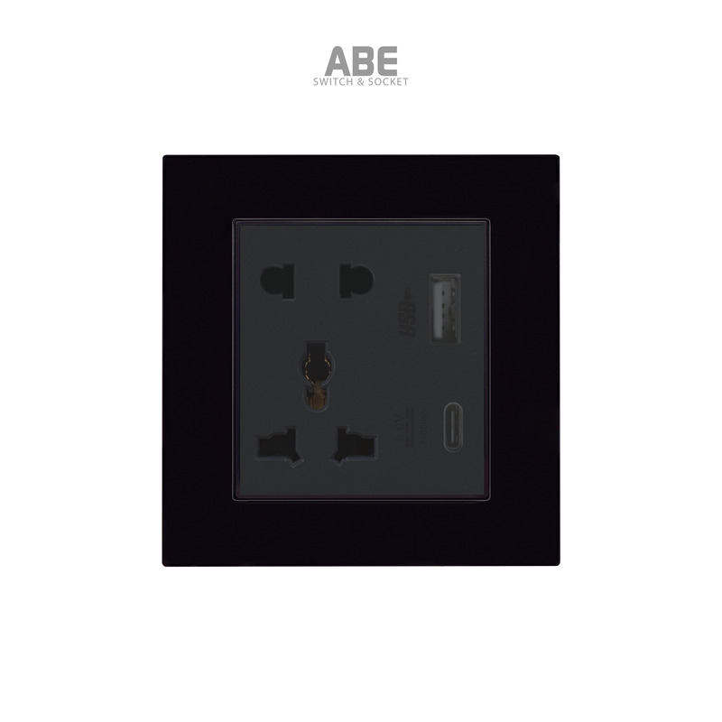 Ổ cắm đôi 3 chấu kèm USB Type C Crystal S có bề mặt được làm bằng kính cường lực đen/ trắng cao cấp kết hợp với hạt phụ kiện công tắc điện – Ổ cắm điện màu đen/ trắng