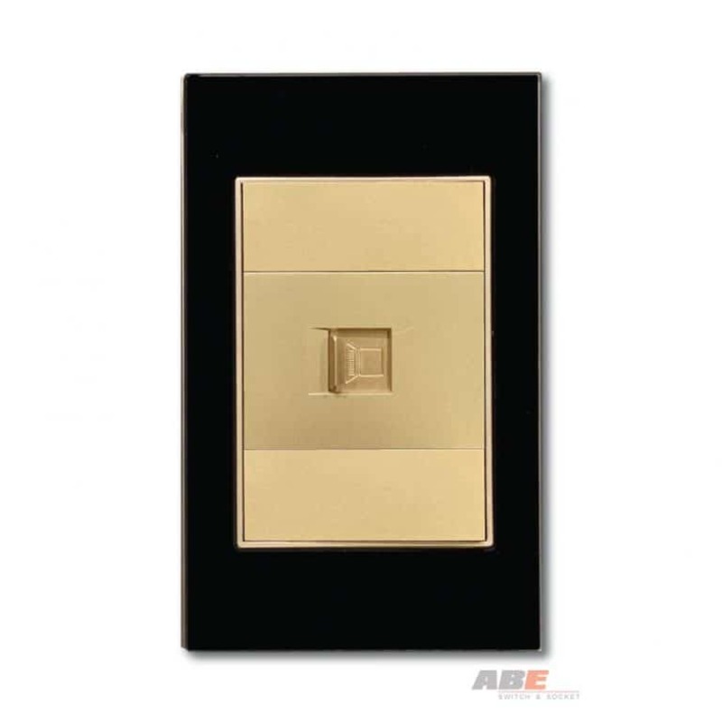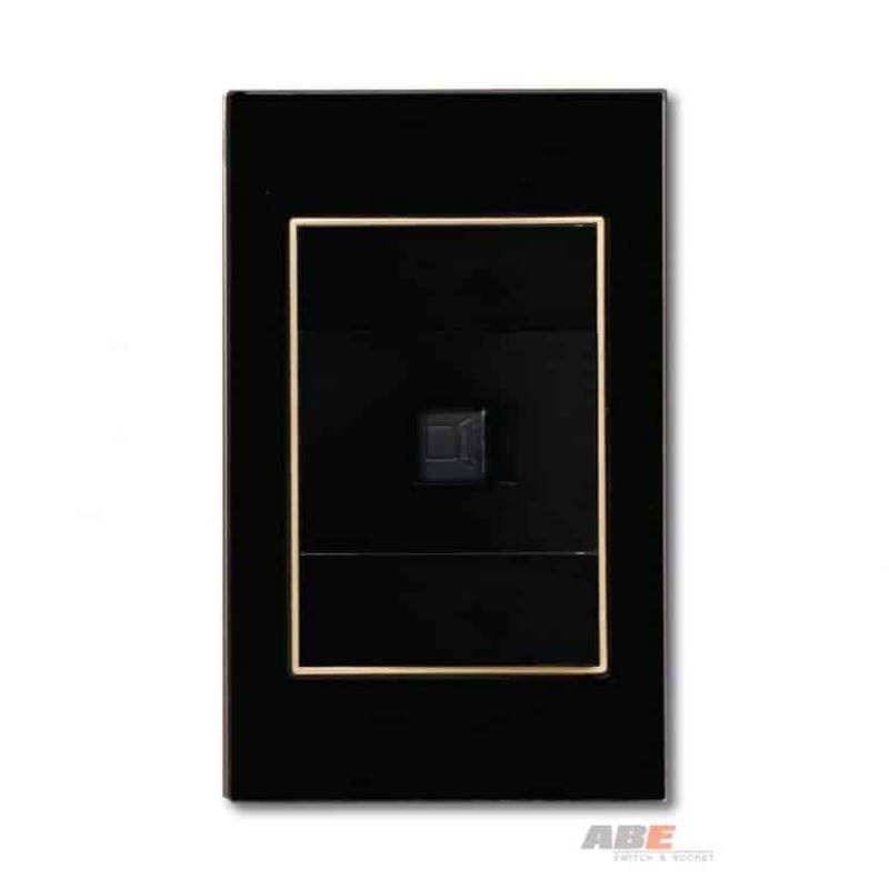 Ổ cắm Mạng Kính đen có bề mặt được làm bằng kính cường lực đen cao cấp kết hợp với hạt phụ kiện công tắc điện – Ổ cắm điện màu đen.
