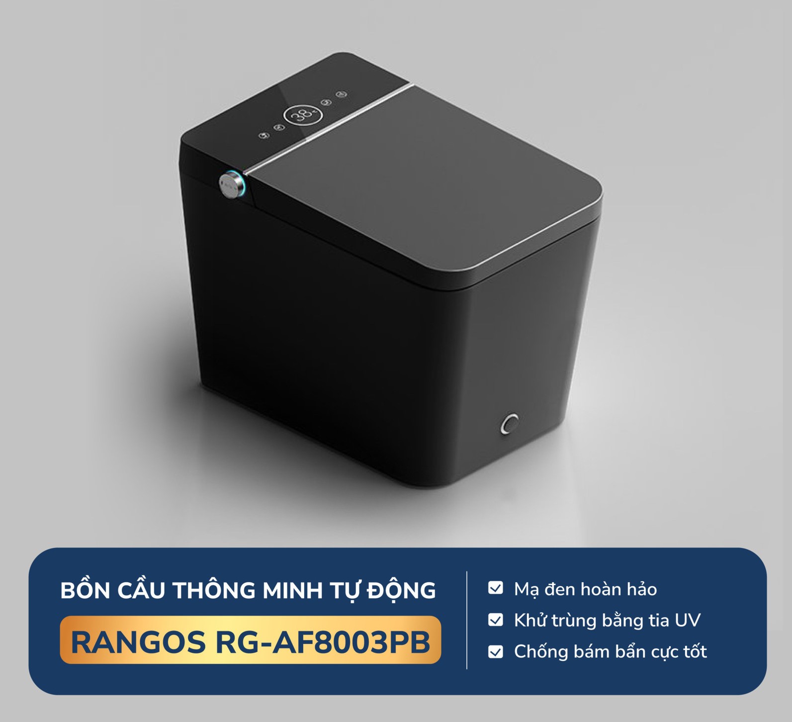 Bồn cầu thông minh Rangos RG-AF8003PB sử dụng công nghệ mạ đen hoàn hảo