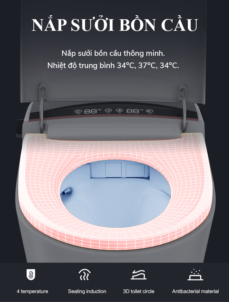 - Chức năng: Sưởi ấm ghế, sấy khô, khử trùng tia UV, vệ sinh nhiều chế độ, tủy chỉnh nhiệt độ nước, nhiệt độ sấy, chống rò rỉ điện...(tùy chỉnh bằng điều khiển hoặc nút nhấn)