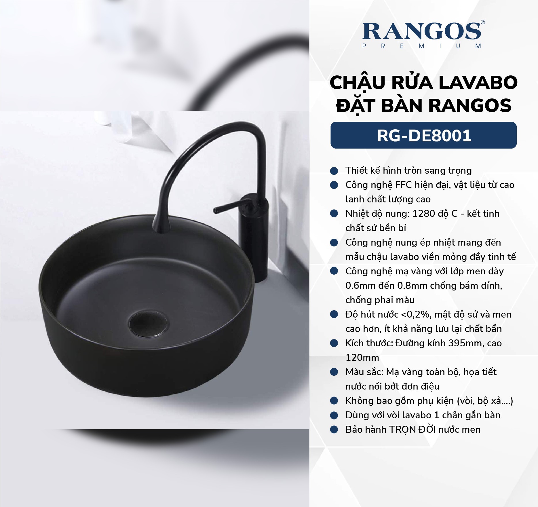 Thông tin sản phẩm Chậu rửa lavabo đặt bàn Rangos RG-DE8001.