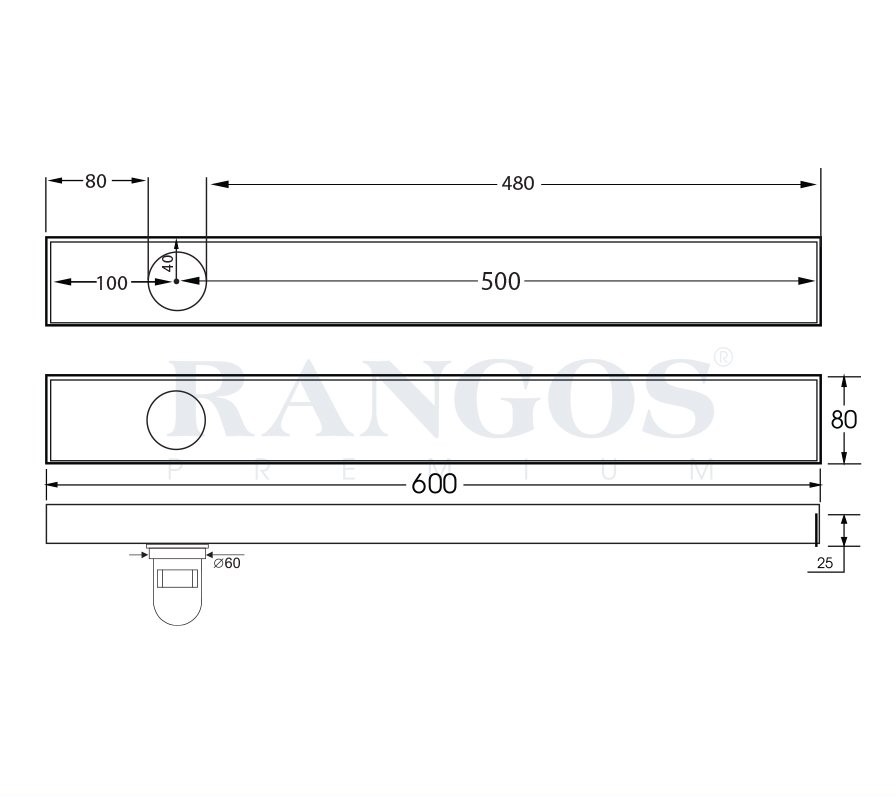 Thông số kỹ thuật sản phẩm thoát sàn INOX 304 Rangos RG-DMAX2