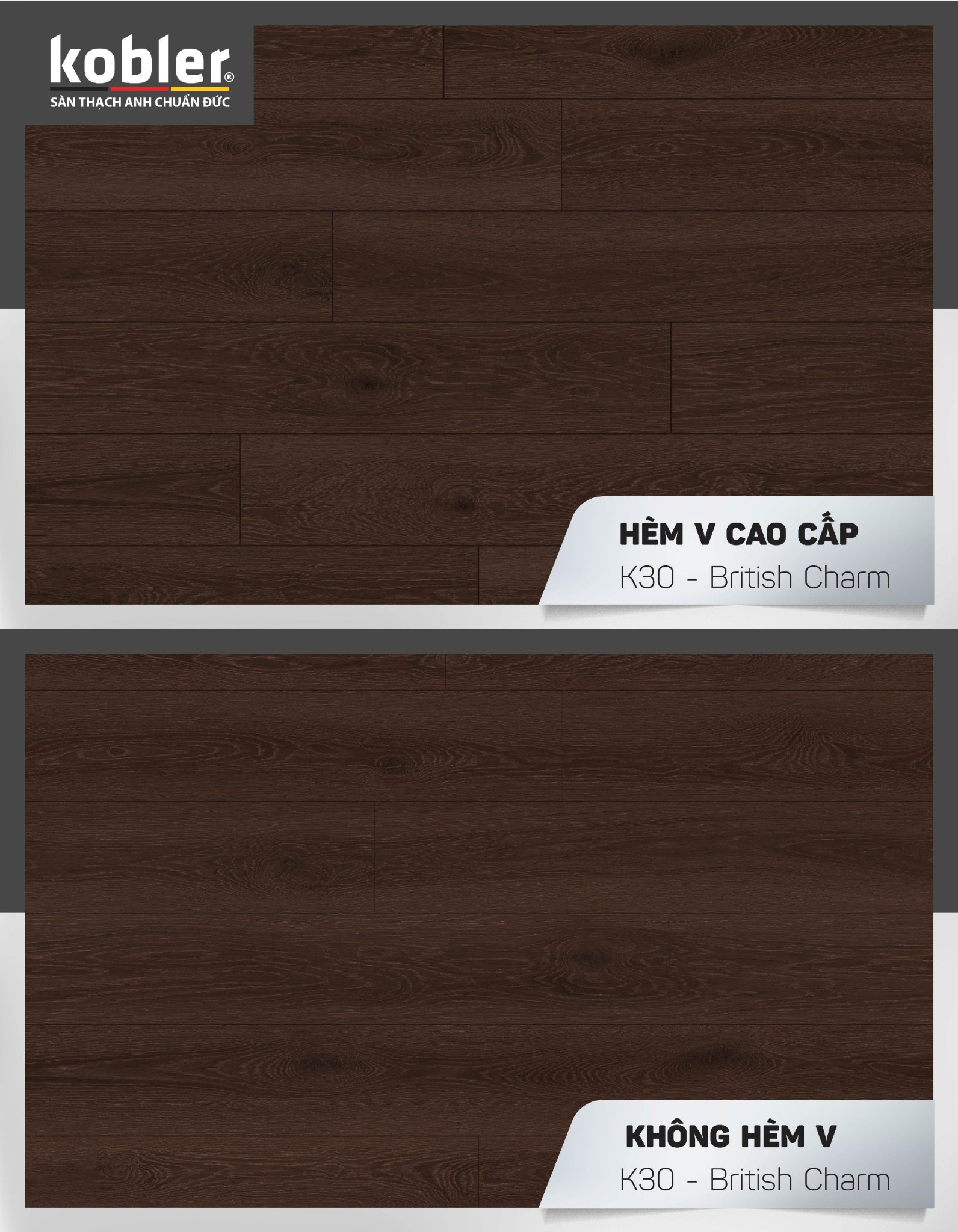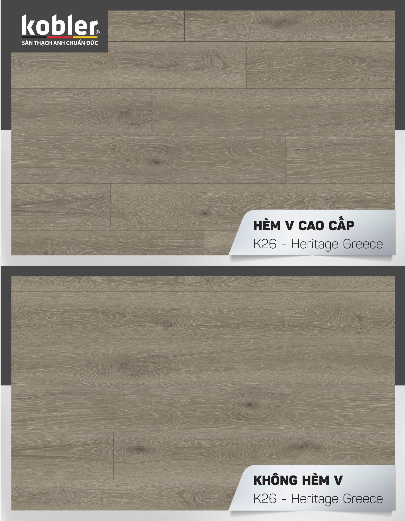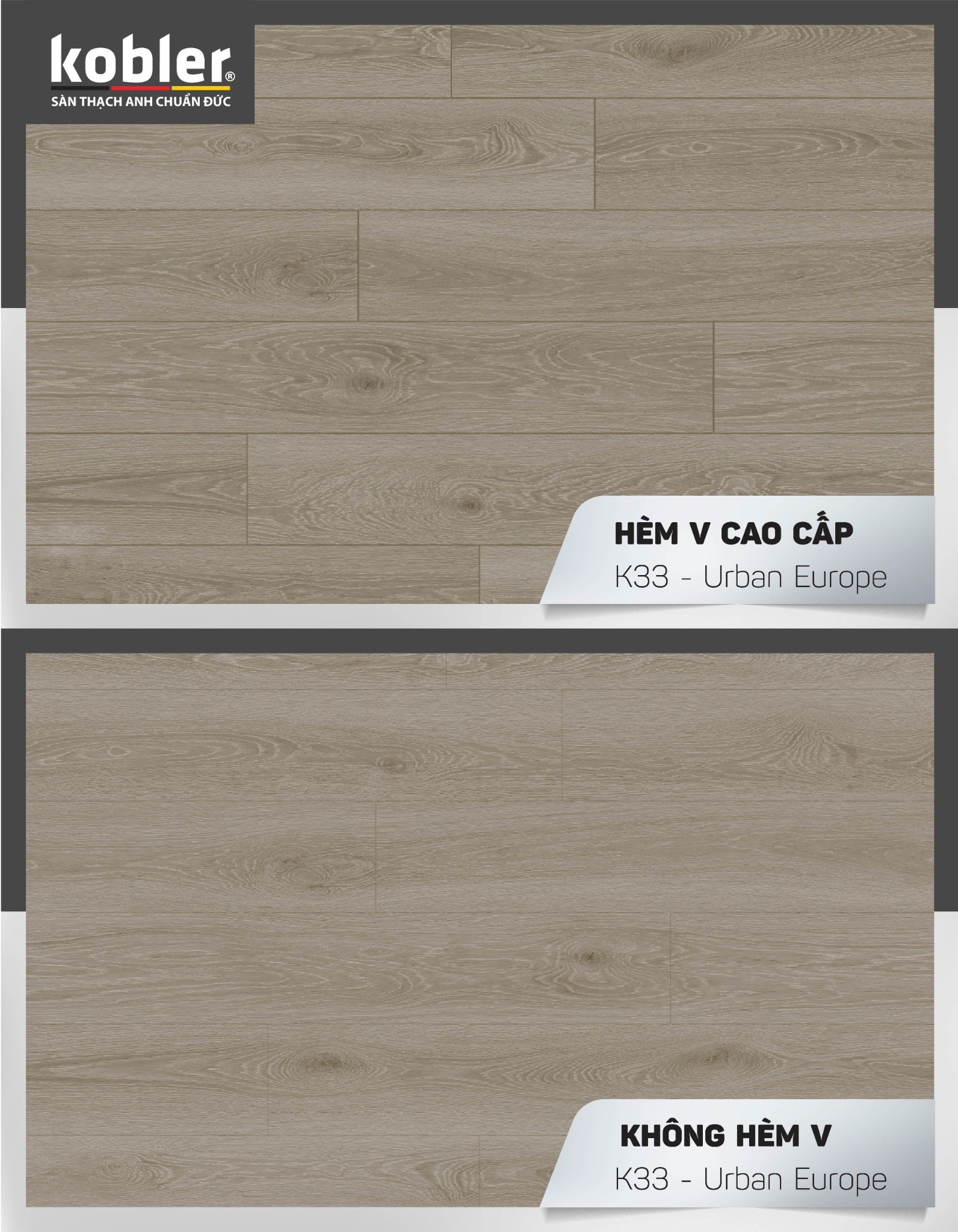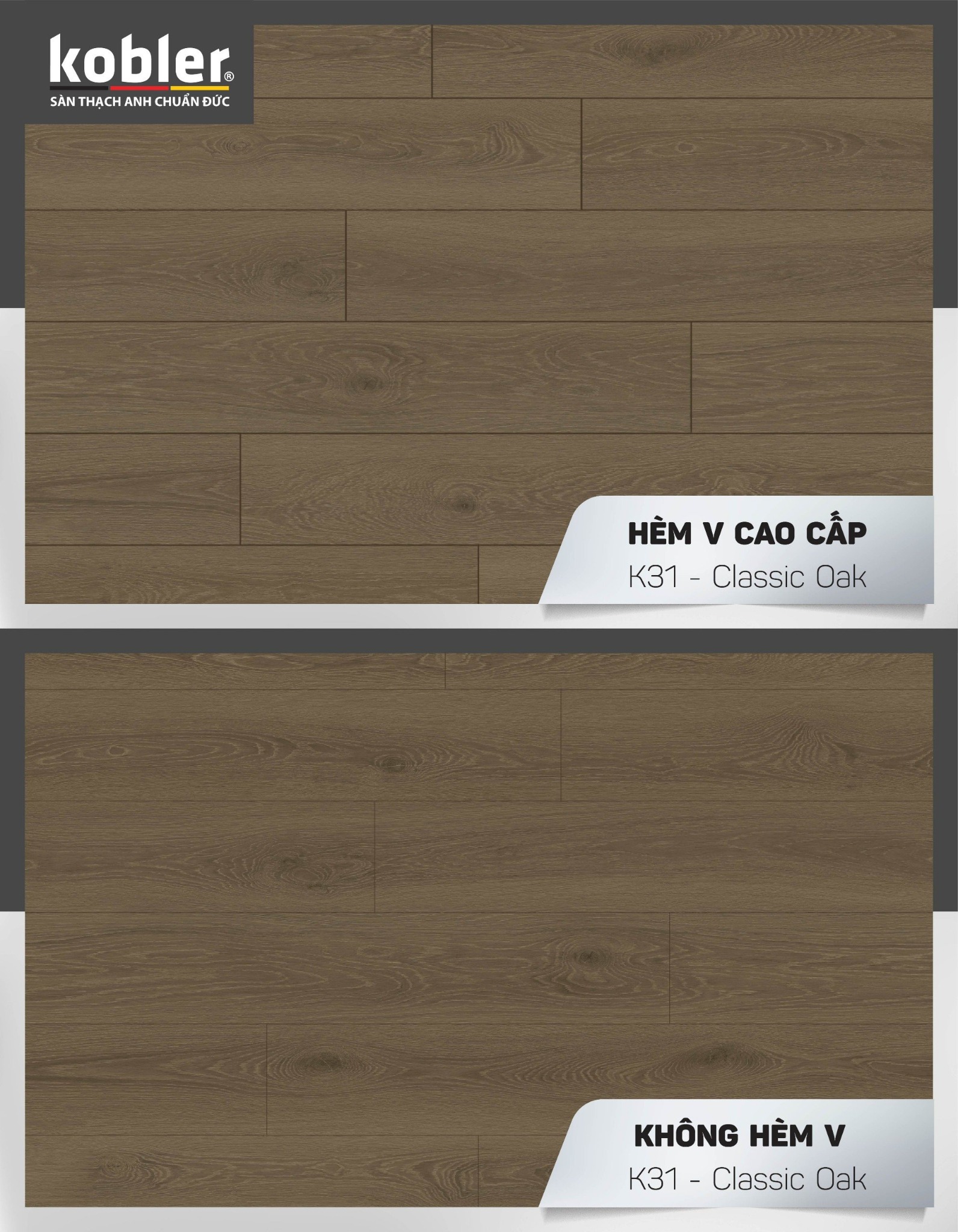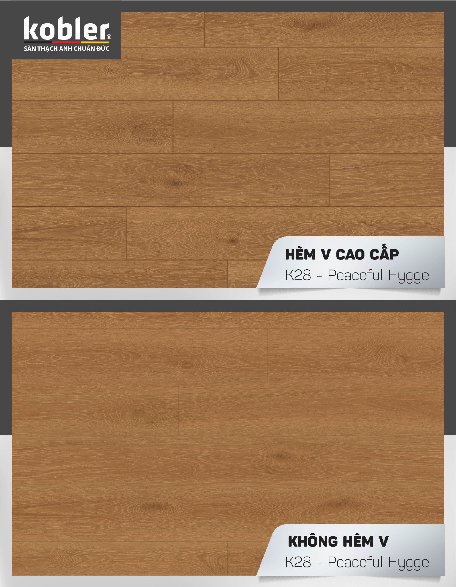 - Lớp film hoa văn: Được thiết kế độc quyền bởi đội ngũ thiết kế của Tập đoàn KOBLER Đức, tạo nên vân sắc mang đậm dấu ăn phong cách Châu Âu.